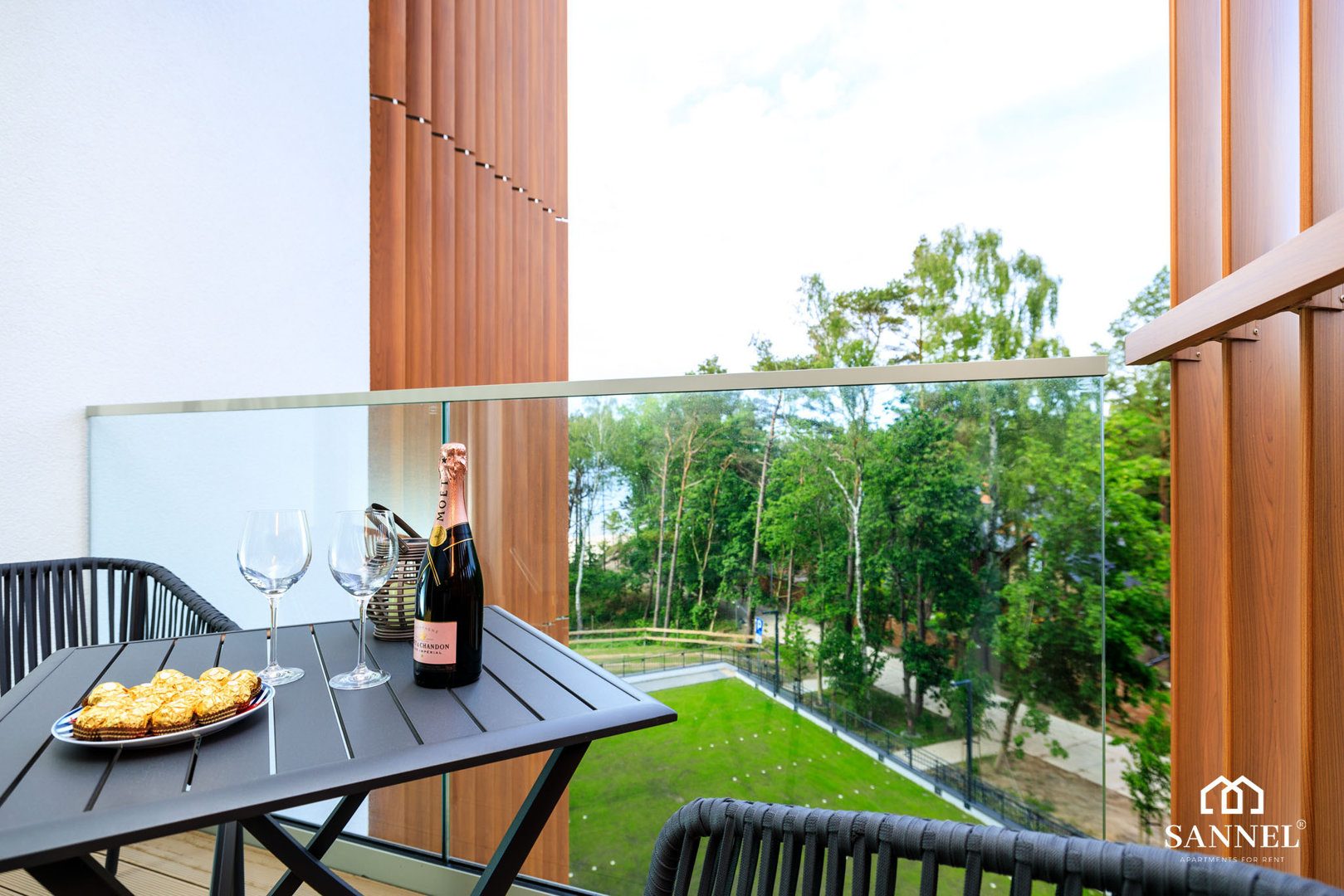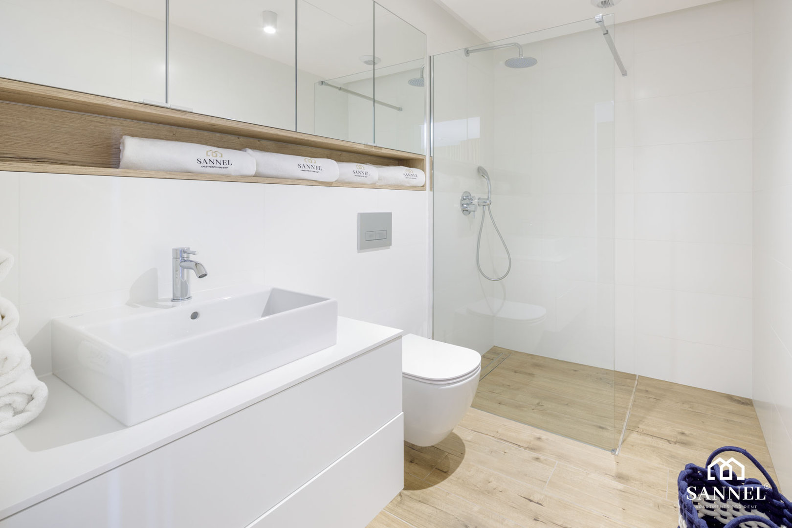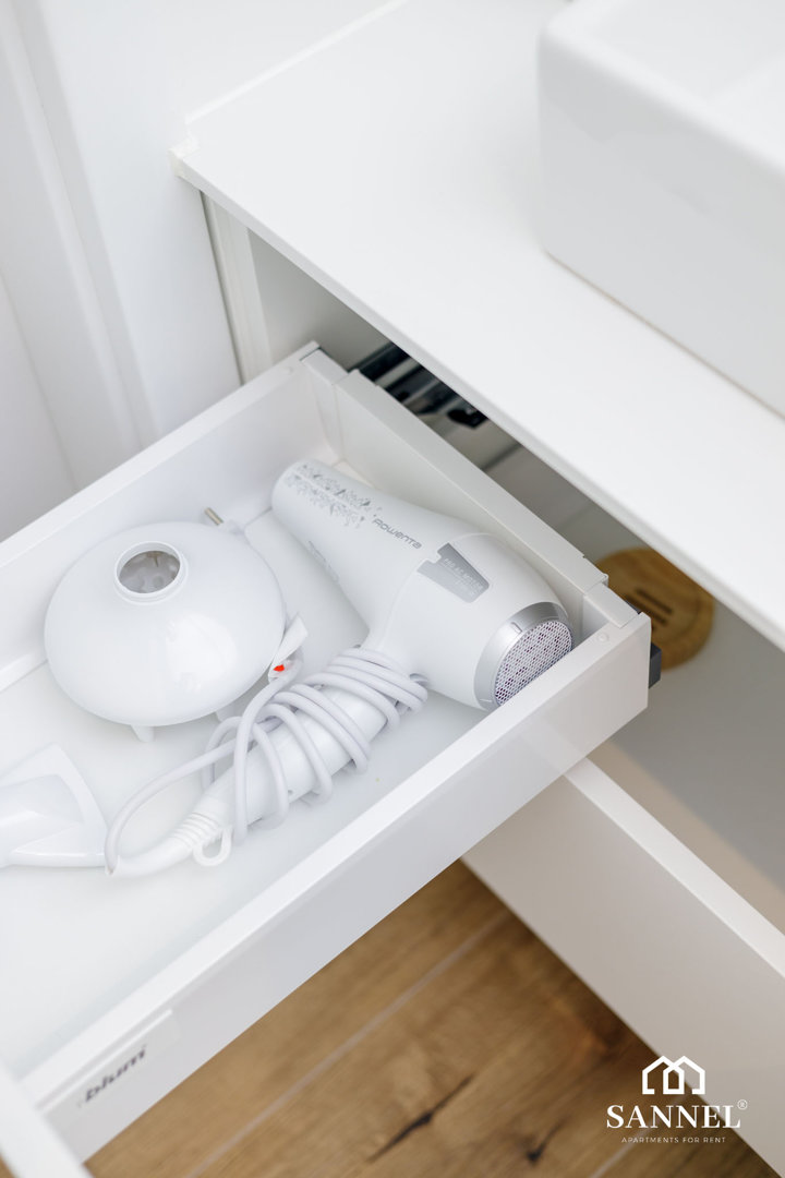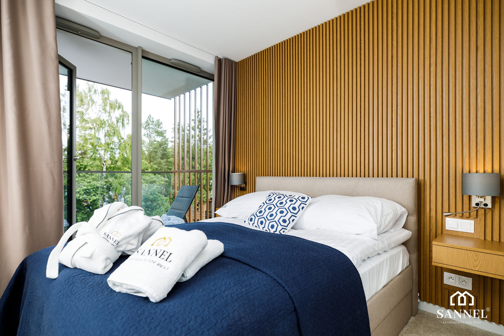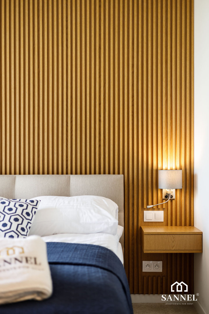 Premium Marin besteht aus einem Wohnzimmer mit Küchenzeile mit separatem Essbereich, einem Schlafzimmer, einem Badezimmer und zwei Balkonen. Das Wohnzimmer ist ausgestattet mit einer ausklappbaren Ecke mit Schlaffunktion, einem Couchtisch, einem Einbauschrank für Küchenutensilien, einem Flachbild-LED-TV mit Zugang zu Kanälen in verschiedenen Sprachen, mit Zugang zu Internet und Streaming Plattformen. Dieses Zimmer verfügt über einen großen Esstisch und Stühle. Das Wohnzimmer öffnet sich zu einem der beiden Balkone mit Lounge-Möbeln. Die Küchenzeile ist mit allen notwendigen Haushaltsgeräten wie Toaster, Wasserkocher, Kaffeemaschine, Zwei-Flammen-Induktionskochfeld und allem notwendigen Zubehör für die Zubereitung von Mahlzeiten ausgestattet. Es gibt auch eine Waschmaschine im Nebengebäude. Das geräumige Schlafzimmer verfügt über ein großes Doppelbett mit Nachttischen mit Beleuchtung und Leselampen, einen geräumigen Kleiderschrank zum Aufbewahren von Kleidung und einen Schreibtisch zum Arbeiten. Das Badezimmer verfügt über eine Dusche mit linearem Ablauf, ein Waschbecken mit Tischplatte und einen Schrank, Hängeschränke mit Regalen und eine Toilette.